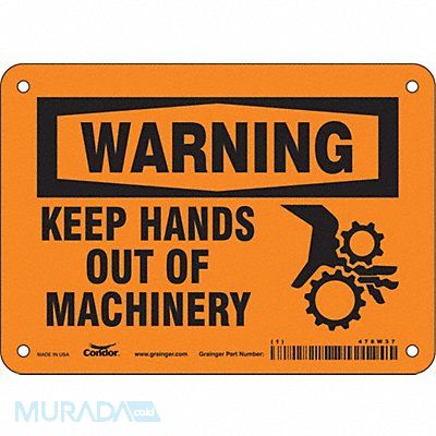 Safety Sign Horizontal Rectangle Number of Printed Sides 1 English Sign Format Traditional OSHA Sign Legend Keep Hands Out Of Machinery Sign Legend Background Color Orange Sign Legend Style Symbol and Text