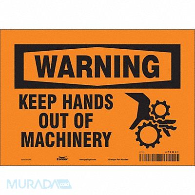 Safety Sign Vertical Rectangle Number of Printed Sides 1 English Sign Format Traditional OSHA Sign Legend Keep Hands Out Of Machinery Sign Legend Background Color Orange Sign Legend Style Symbol and Text