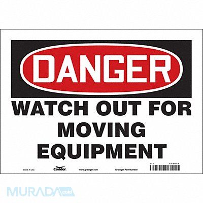 Safety Sign Horizontal Rectangle Number of Printed Sides 1 English Sign Format Traditional OSHA Sign Legend Watch Out For Moving Equipment Sign Legend Background Color White Sign Legend Style Text