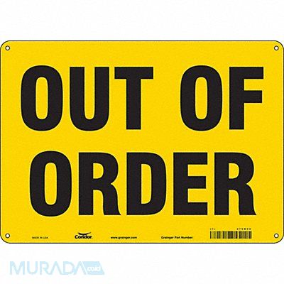 Safety Sign Horizontal Rectangle Number of Printed Sides 1 English Sign Format Other Format Sign Legend Out Of Order Sign Legend Background Color Yellow Sign Legend Style Text