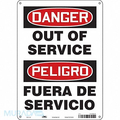 Safety Sign Vertical Rectangle Number of Printed Sides 1 English Spanish Sign Format Traditional OSHA Sign Legend Out Of Service/Fuera De Servicio Sign Legend Background Color White Sign Legend Style Text