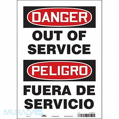 Safety Sign Vertical Rectangle Number of Printed Sides 1 English Spanish Sign Format Traditional OSHA Sign Legend Out Of Service/Fuera De Servicio Sign Legend Background Color White Sign Legend Style Text