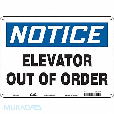 J9185 Safety Sign Horizontal Rectangle Number of Printed Sides 1 English Sign Format Traditional OSHA Sign Legend Elevator Out Of Order Sign Legend Background Color White Sign Legend Style Text
