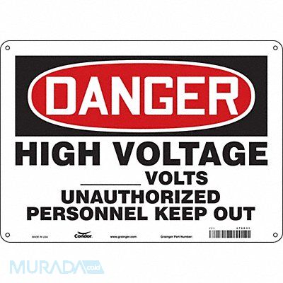 Safety Sign Horizontal Rectangle Number of Printed Sides 1 English Sign Format Traditional OSHA Sign Legend High Voltage _______ Volts Unauthorized Personnel Keep Out Sign Legend Background Color White Sign Legend Style Text