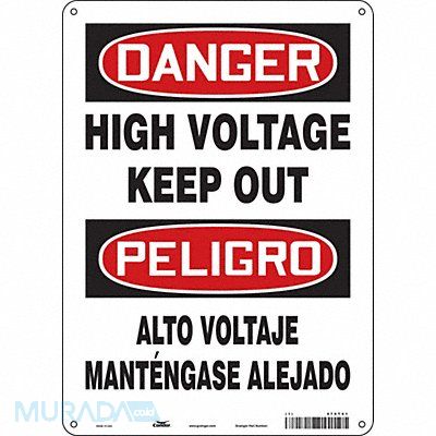 Safety Sign Vertical Rectangle Number of Printed Sides 1 English Spanish Sign Format Traditional OSHA Sign Legend High Voltage Keep Out/Alto Voltaje Mantengase Afuera Sign Legend Background Color White Sign Legend Style Text