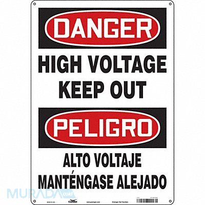 Safety Sign Vertical Rectangle Number of Printed Sides 1 English Spanish Sign Format Traditional OSHA Sign Legend High Voltage Keep Out/Alto Voltaje Mantengase Afuera Sign Legend Background Color White Sign Legend Style Text