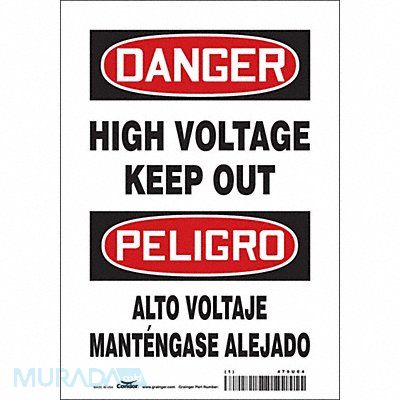 Safety Sign Horizontal Rectangle Number of Printed Sides 1 English Spanish Sign Format Traditional OSHA Sign Legend High Voltage Keep Out/Alto Voltaje Mantengase Afuera Sign Legend Background Color White Sign Legend Style Text