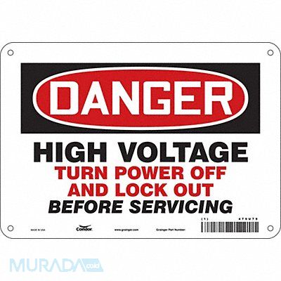 J8886 Safety Sign Vertical Rectangle Number of Printed Sides 1 English Sign Format Traditional OSHA Sign Legend High Voltage Turn Power Off And Lock Out Before Servicing Sign Legend Background Color White Sign Legend Style Text