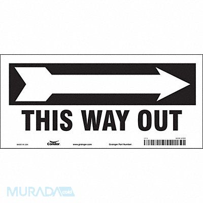 Safety Sign Vertical Rectangle Number of Printed Sides 1 English Sign Legend This Way Out (Arrow) Sign Legend Background Color Black White Sign Legend Style Symbol and Text