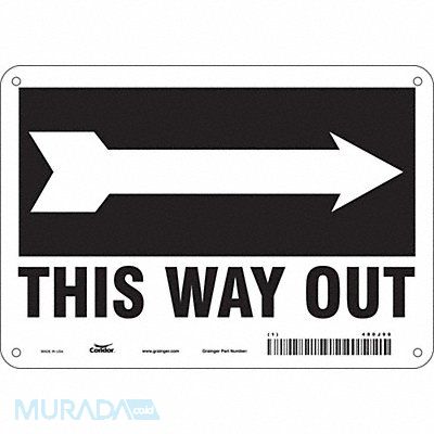 Safety Sign Vertical Rectangle Number of Printed Sides 1 English Sign Legend This Way Out (Arrow) Sign Legend Background Color Black White Sign Legend Style Symbol and Text