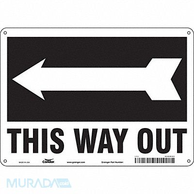 Safety Sign Horizontal Rectangle Number of Printed Sides 1 English Sign Legend This Way Out (Arrow) Sign Legend Background Color Black White Sign Legend Style Symbol and Text