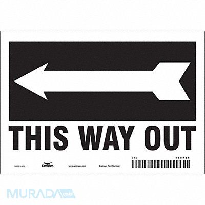 Safety Sign Vertical Rectangle Number of Printed Sides 1 English Sign Legend This Way Out (Arrow) Sign Legend Background Color Black White Sign Legend Style Symbol and Text