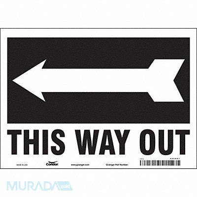 Safety Sign Horizontal Rectangle Number of Printed Sides 1 English Sign Legend This Way Out (Arrow) Sign Legend Background Color Black White Sign Legend Style Symbol and Text