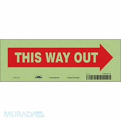 Safety Sign Vertical Rectangle Number of Printed Sides 1 English Sign Legend This Way Out (Arrow) Sign Legend Background Color White Sign Legend Style Symbol and Text