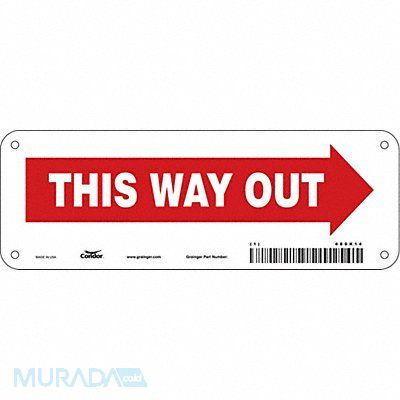 J7058 Safety Sign Vertical Rectangle Number of Printed Sides 1 English Sign Legend This Way Out (Arrow) Sign Legend Background Color White Sign Legend Style Symbol and Text