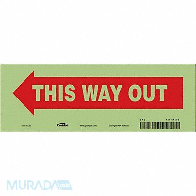 Safety Sign Vertical Rectangle Number of Printed Sides 1 English Sign Legend This Way Out (Arrow) Sign Legend Background Color White Sign Legend Style Symbol and Text