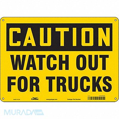 Safety Sign Horizontal Rectangle Number of Printed Sides 1 English Sign Format Traditional OSHA Sign Legend Watch Out For Trucks Sign Legend Background Color Yellow Sign Legend Style Text