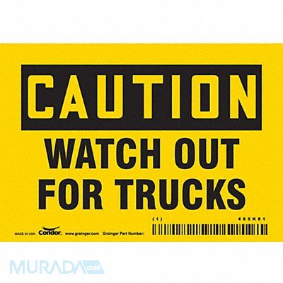 Safety Sign Horizontal Rectangle Number of Printed Sides 1 English Sign Format Traditional OSHA Sign Legend Watch Out For Trucks Sign Legend Background Color Yellow Sign Legend Style Text