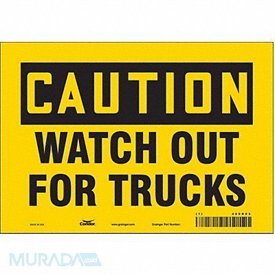 Safety Sign Vertical Rectangle Number of Printed Sides 1 English Sign Format Traditional OSHA Sign Legend Watch Out For Trucks Sign Legend Background Color Yellow Sign Legend Style Text