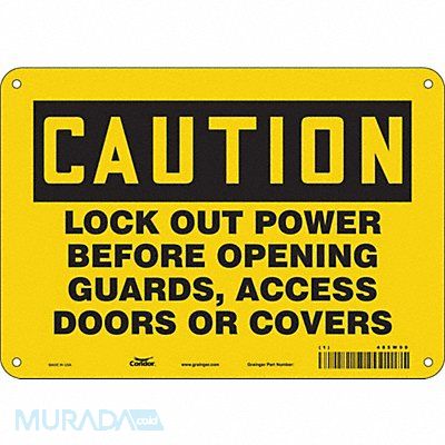Lockout Sign Vertical Rectangle Number of Printed Sides 1 English Sign Format Traditional OSHA Sign Legend Lock Out Power Before Opening Guards Access Doors Or Covers Sign Legend Background Color Yellow Sign Legend Style Text