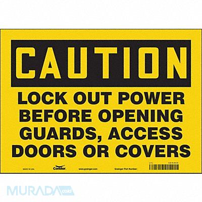 Lockout Sign Horizontal Rectangle Number of Printed Sides 1 English Sign Format Traditional OSHA Sign Legend Lock Out Power Before Opening Guards Access Doors Or Covers Sign Legend Background Color Yellow Sign Legend Style Text