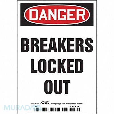 K0127 Lockout Sign Vertical Rectangle Number of Printed Sides 1 English Sign Format Traditional OSHA Sign Legend Breakers Locked Out Sign Legend Background Color White Sign Legend Style Text