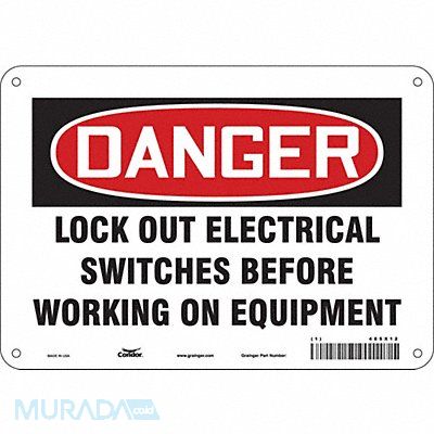 Lockout Sign Vertical Rectangle Number of Printed Sides 1 English Sign Format Traditional OSHA Sign Legend Lock Out Electrical Switches Before Working On Equipment Sign Legend Background Color White Sign Legend Style Text