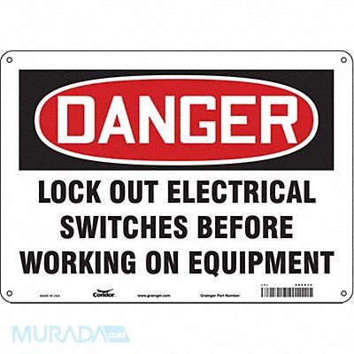 Safety Sign Horizontal Rectangle Number of Printed Sides 1 English Sign Format Traditional OSHA Sign Legend Lock Out Electrical Switches Before Working On Equipment Sign Legend Background Color White Sign Legend Style Text