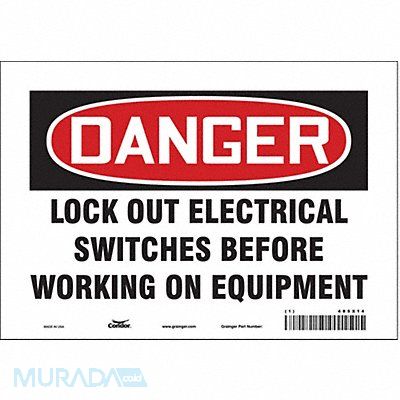Lockout Sign Vertical Rectangle Number of Printed Sides 1 English Sign Format Traditional OSHA Sign Legend Lock Out Electrical Switches Before Working On Equipment Sign Legend Background Color White Sign Legend Style Text