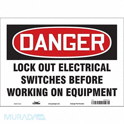 Lockout Sign Horizontal Rectangle Number of Printed Sides 1 English Sign Format Traditional OSHA Sign Legend Lock Out Electrical Switches Before Working On Equipment Sign Legend Background Color White Sign Legend Style Text