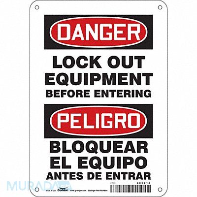 Lockout Sign Horizontal Rectangle Number of Printed Sides 1 English Spanish Sign Format Traditional OSHA Sign Legend Lock Out Equipment Before Entering/Bloquear El Equipo Antes De Entrar Sign Legend Background Color White Sign Legend Style Text