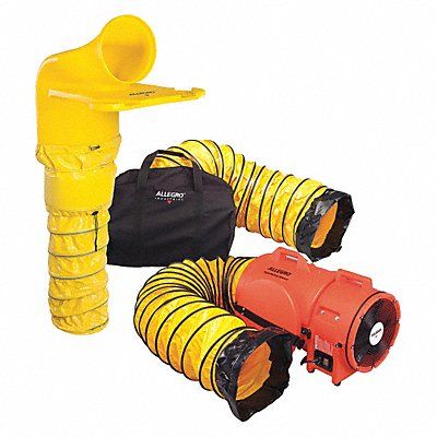 Confined Space Blower Blower/Fan Speed 4 200 RPM Includes 15 ft Duct 6 ft Duct Duct Storage Bag Manhole Ventilation Pass-thru Current (A) 25 A Duct Diameter 12 in Horsepower 1/4 hp Maximum Flow in Free Air 1 330 cfm Voltage 12 V DC Color Orange Yellow Material Polyethylene Height 17 in Length 27 in Width 16 in Type Axial