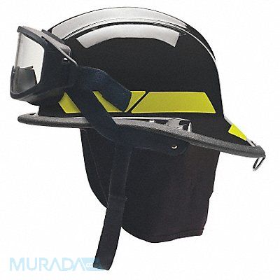 Fire Helmet Black Modern Thermoplastic Shell Material Fits Hat Size 6-1/2 to 8 Nomex(R) Quick Release and Postman Slide Chin Strap 4 pt Ratchet Suspension