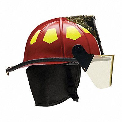 Fire Helmet Traditional Matte Red Fiberglass Shell Material Fits Hat Size 6-1/2 to 8 Nomex(R) Quick Release and Postman Slide Chin Strap 6-Point Sure-Lock(R) Ratchet Suspension Includes 4 in Faceshield Standards NFPA 1971-2007