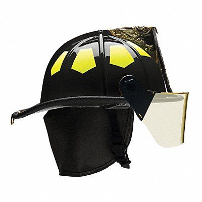 Fire Helmet Traditional Gloss Black Fiberglass Shell Material Fits Hat Size 6-1/2 to 8 Nomex(R) Quick Release and Postman Slide Chin Strap 6-Point Sure-Lock(R) Ratchet Suspension Includes 4 in Faceshield Standards NFPA 1971 Current Edition