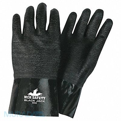 Chemical Resistant Gloves Neoprene Fully Not Rated 12 in Cuff Gauntlet Lining Interlock Glove Size L Color Black Supported Standards ANSI/ISEA 105 2016 Resists Abrasion Chemicals Oils Package Quantity 12