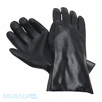 Chemical Resistant Gloves PVC Palm and Fingers 43 mil 12 in Cuff Gauntlet Lining Interlock Glove Size L Color Black Unsupported Resists Abrasion Chemicals Oils Package Quantity 12