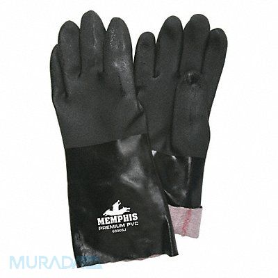 Chemical Resistant Gloves PVC Palm and Fingers 14 in Cuff Gauntlet Lining Jersey Glove Size L Color Black Supported Standards EN388 Resists Abrasion Chemicals Oils Package Quantity 12