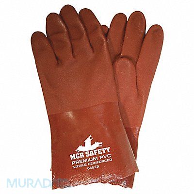 Chemical Resistant Gloves PVC Fully Not Rated 12 in Cuff Gauntlet Lining Jersey Glove Size L Color Red Supported Resists Abrasion Chemicals Oils Package Quantity 12