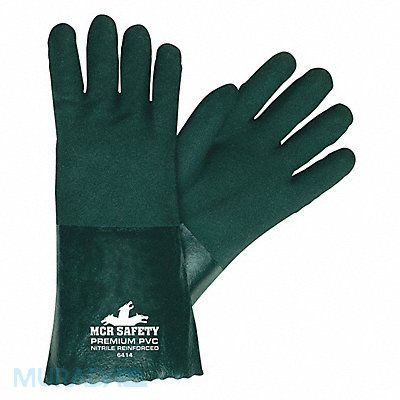 Chemical Resistant Gloves PVC Fully Not Rated 14 in Cuff Gauntlet Lining Jersey Glove Size L Color Green Supported Resists Abrasion Chemicals Oils Package Quantity 12