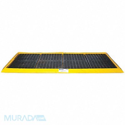 Drum Spill Containment Pallet Bottom Inside Dimensions 96 in L x 48 in W Bottom Inside Length 96 in Bottom Inside Width 48 in Color Yellow/Black Composition PVC Dimensions 48 in L x 96 in W For Number of 55 gal Drums 8 Grate Color Black Grate Material Polyethylene Height 3 in Includes Removable Grate Includes Overflow Bladder No Indoor/Outdoor Use Indoor Length 8 ft Manufacturer Warranty 1 yr Number of Handles 0 Product Type Foldable Sidewall Spill Tray With Grating