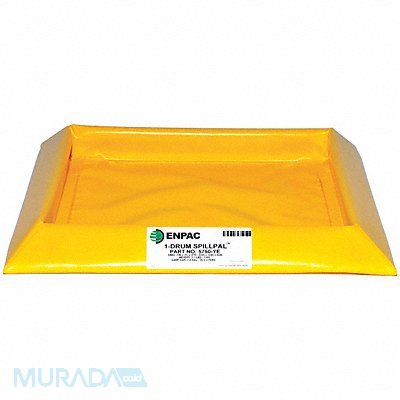 Drum Spill Containment Pallet Bottom Inside Dimensions 24 in L x 24 in W Bottom Inside Length 24 in Bottom Inside Width 24 in Color Yellow Composition PVC Dimensions 24 in L x 24 in W For Number of 55 gal Drums 1 Height 3 in Includes Overflow Bladder No Indoor/Outdoor Use Indoor Length 24 in Manufacturer Warranty 1 yr Number of Handles 0 Product Type Foldable Sidewall Spill Tray Recycled Content ( Percent) No Recycled Content Sidewall Support Material Foam Sidewall Type Foam