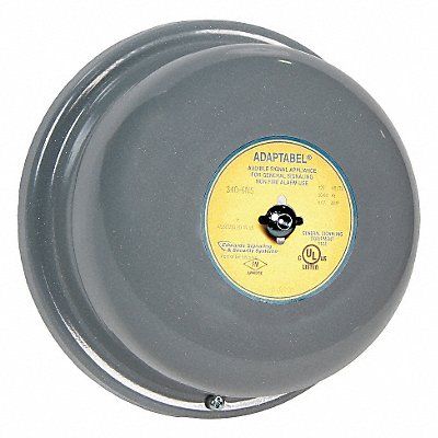 Audible Alarm Type Bell Visual Indicator Type No Visual Indicator Voltage 120V AC Decibels 92 dB Sound Pattern Continuous Indoor/Outdoor Indoor Mounting Surface Height 7.125 in Width 7.125 in Depth 3.6875 in Diameter 7.125 in Vibrating Yes Housing Material Steel Standards UL FM CSFM Amps 0.070A Color Gray Bell