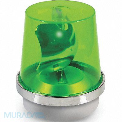 Rotating Warning Light Color Green Lamp Type 40W Halogen Flashes per Minute 75 Light Output 265 Lumens Lamp Life 25 000 hr Lens Design Dome Lens Material Polycarbonate Housing Material Cast Steel Mounting 1/2 in NPT Pipe Rating Weatherproof Power Source 120V AC Current Drawn 0.35A AC Height 8 1/2 in