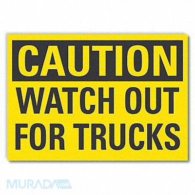 Caution Sign Vertical Rectangle Number of Printed Sides 1 English Sign Format Traditional OSHA Sign Legend Watch Out For Trucks Sign Legend Background Color Yellow Sign Legend Style Text