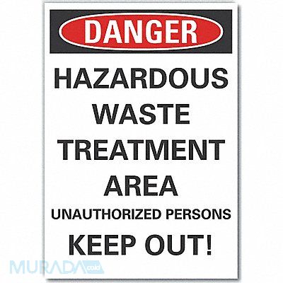 Danger Sign Vertical Rectangle Number of Printed Sides 1 English Sign Format Traditional OSHA Sign Legend Hazardous Waste Treatment Area Unauthorized Persons Keep Out! Sign Legend Background Color White Sign Legend Style Text
