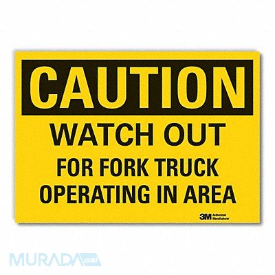 Caution Sign Horizontal Rectangle Number of Printed Sides 1 English Sign Format Traditional OSHA Sign Legend Watch Out For Fork Truck Operating In Area Sign Legend Background Color Yellow Sign Legend Style Text
