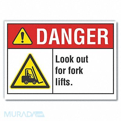 Danger Sign Horizontal Rectangle Number of Printed Sides 1 English Sign Format ANSI/OSHA Format Sign Legend Look Out For Fork Lifts. Sign Legend Background Color White Sign Legend Style Symbol and Text