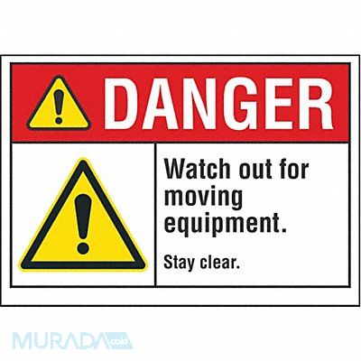 Danger Sign Horizontal Rectangle Number of Printed Sides 1 English Sign Format ANSI/OSHA Format Sign Legend Watch Out For Moving Equipment. Stay Clear. Sign Legend Background Color White Sign Legend Style Symbol and Text