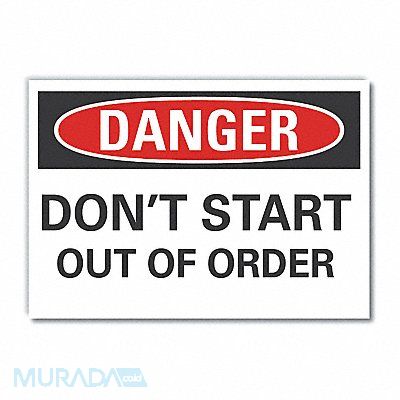 Danger Sign Horizontal Rectangle Number of Printed Sides 1 English Sign Format Traditional OSHA Sign Legend Don t Start Out Of Order Sign Legend Background Color White Sign Legend Style Text